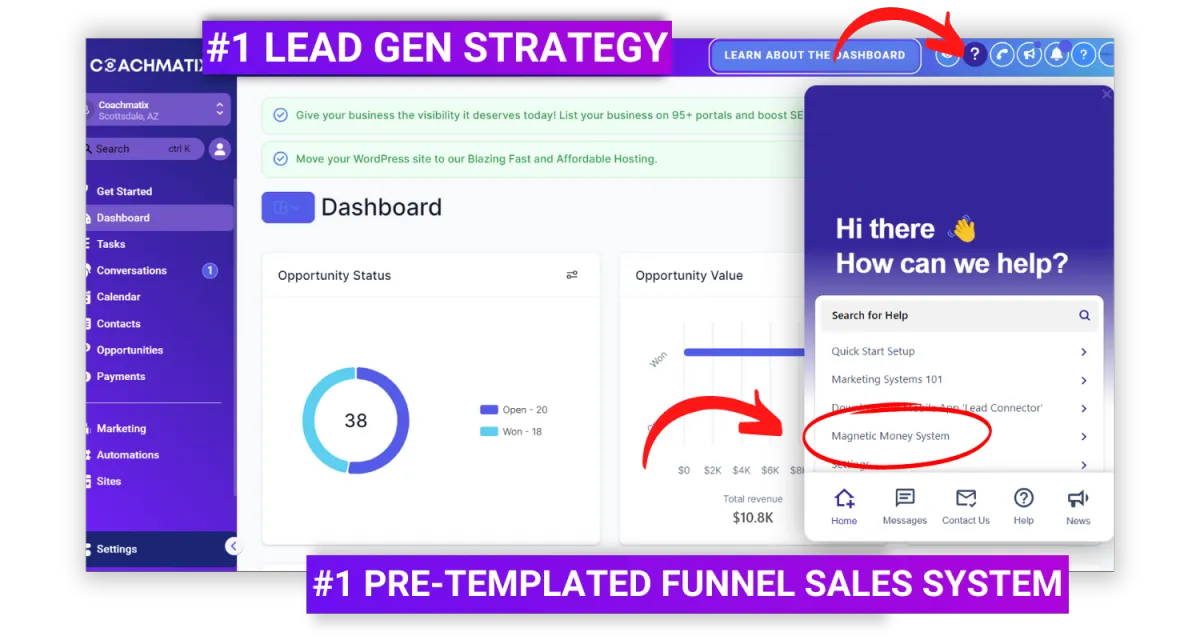 Begin your 'Quick Start Setup' & explore training by tapping the '?' icon in the top right of the Coachmatix dashboard. We recommend completing the 'Quick Start Setup' & 'Marketing Systems 101' for starters. As you explore features of Coachmatix, you can learn about that feature by using the search bar within the training section or finding the necessary training tab category.